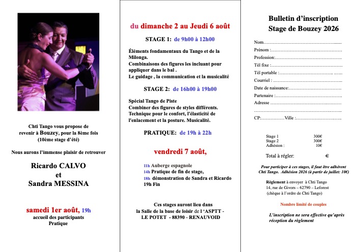Inscriptions uniquement en couple et au stage complet uniquement .
